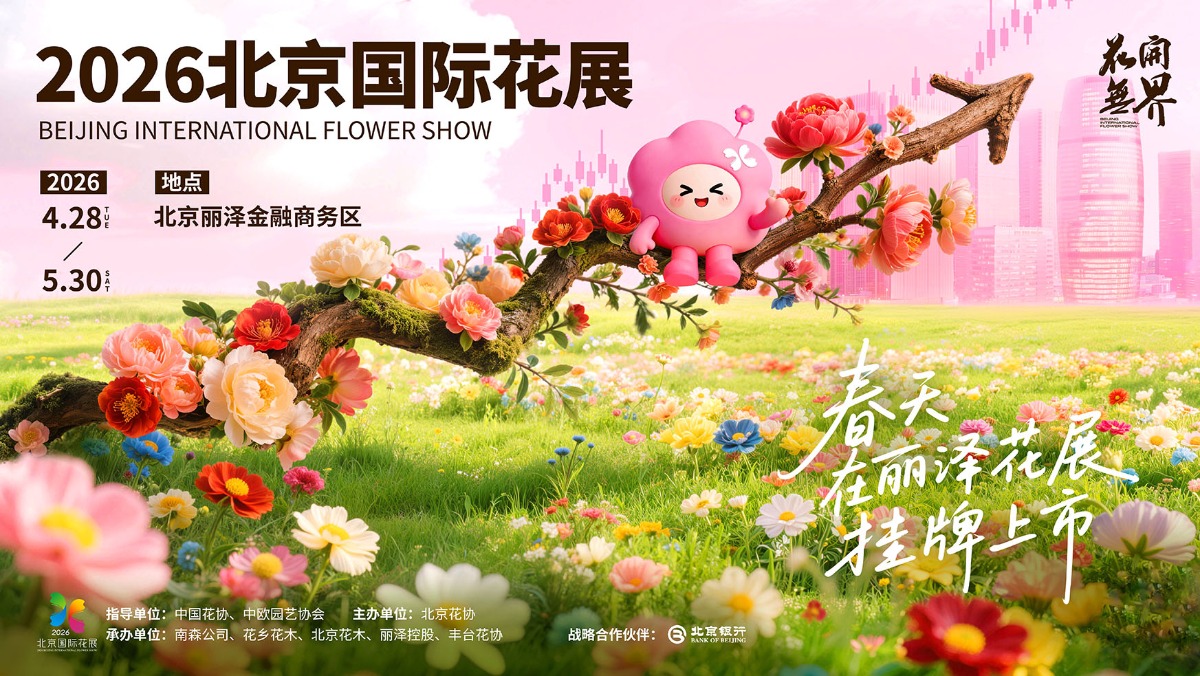 “2026北京国际花展”第一张预热海报在活动现场发布,吉祥物“花团团”正攀上茁壮生长的枝头,向四海宾朋发出春天的第一声问候。丰台区园林绿化局党组成员、副局长范爽现场发出邀请,4月28日至5月30日,2026北京国际花展将在丽泽金融商务区举办。花展打造超12万平方米的沉浸式花卉盛景,布局60多个精品花园。
