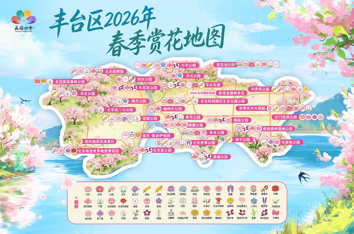 “一路繁花”是丰台给这个春天定下的主题。现场,丰台区推出“两横两纵”四条赏花路线,整合全区28处特色赏花片区、超40种观赏花卉,覆盖超50万平方米赏花面积,形成不同景致、不同韵味的春日花海,满足市民多样化的踏青需求。