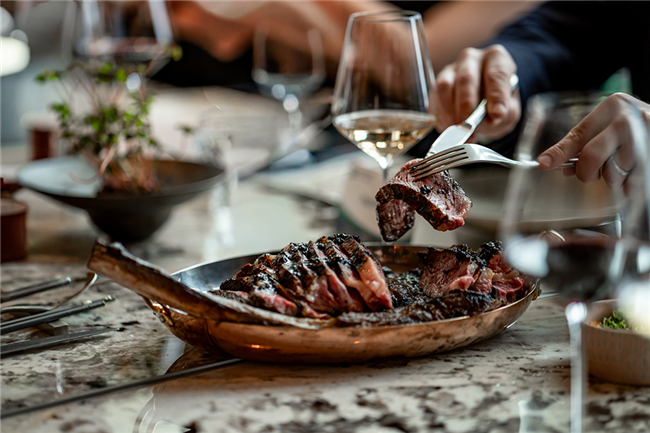图:启动午宴现场,嘉宾品鉴爱尔兰战斧牛排、牛肋排等料理