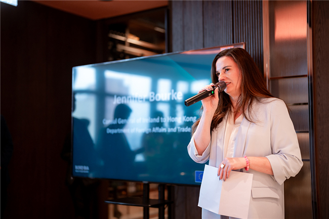 图:爱尔兰驻香港及澳门总领事白嬿女士(Ms. Jennifer Bourke)在启动仪式上致辞