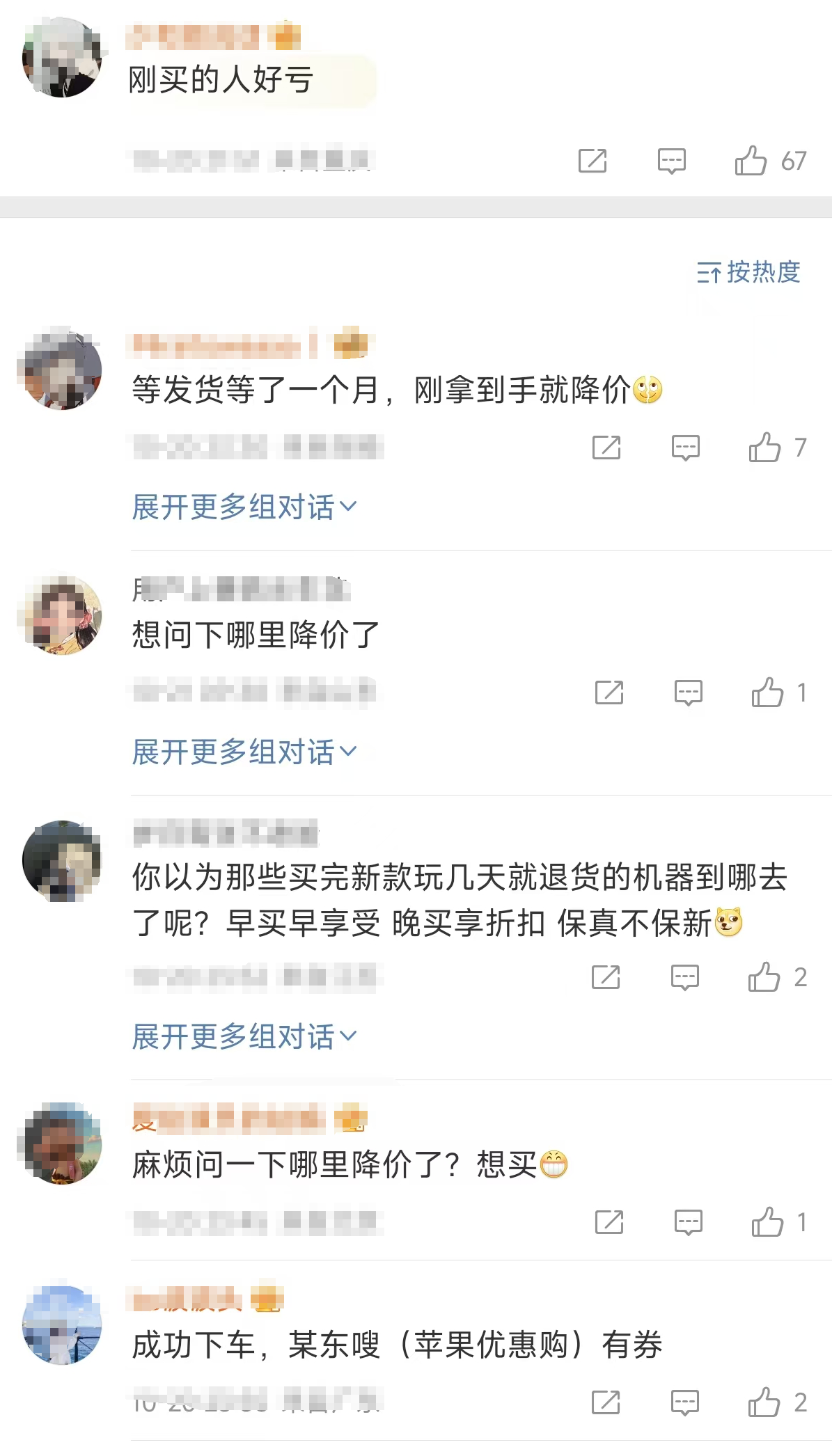降价消息传出后,不少消费者表示“刚买就降500,好亏”,但也有消费者认为这是一个购买的好时机。