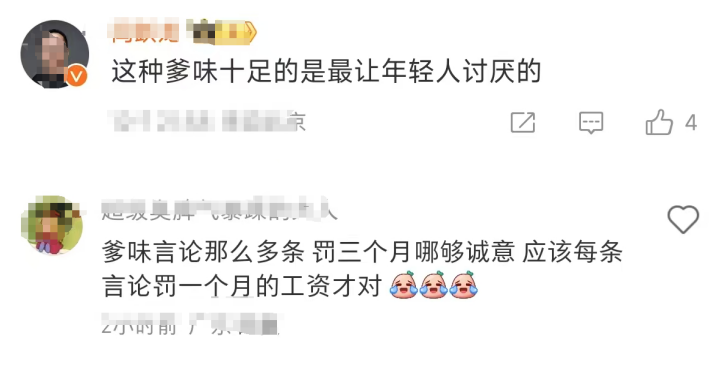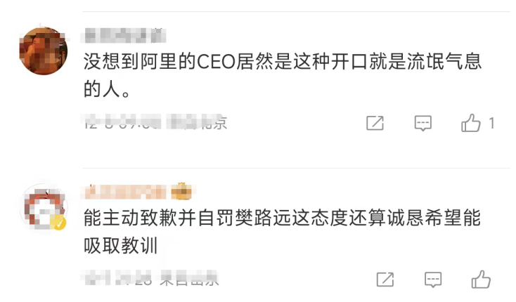 所谓“爹味”发言,通常指的是在言语间流露出权威与控制欲,倾向于指导或驾驭他人,时而显得过于自信、傲慢或脱离群众。在微博、小红书等平台搜索相关内容,可以看到有网友直言“这种爹味十足的是最让年轻人讨厌的”,还有网友表示,“爹味言论那么多条,罚三个月哪够诚意,应该每条言论罚一个月的工资才对”,更有网友评论,“没想到阿里的CEO居然是这种开口就是流氓气息的人”。但也有网友认为“能主动致歉并自罚,樊路远这态度还算诚恳,希望能吸取教训”。