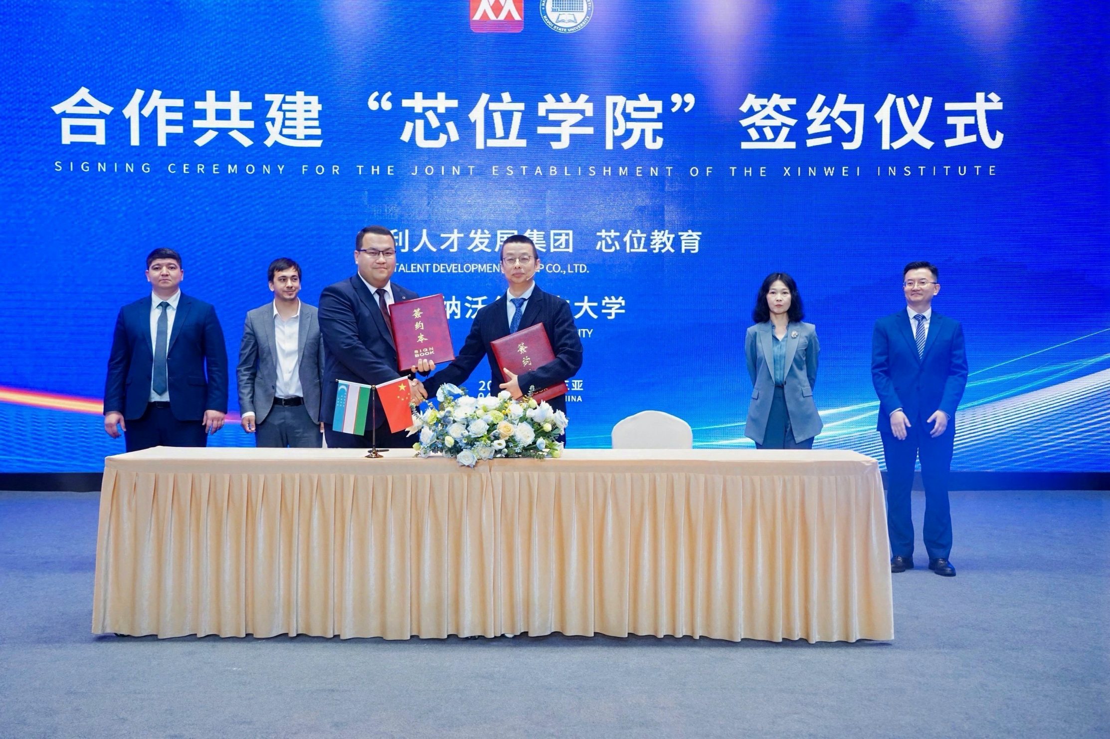 论坛当天,吉利人才发展集团、芯位教育与乌兹别克斯坦纳沃伊国立大学还举行了合作共建“芯位学院”的签约仪式。