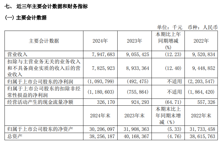 2024年,三六零实现收入约79.48亿元,同比下降12.23%;归属于上市公司股东的净利润约为-10.94亿元,归属于上市公司股东的扣除非经常性损益的净利润约为-11.81亿元。