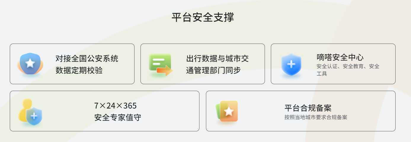 在下方显示的“平台安全支撑”中,还明确标注了“对接全国公安系统数据定期校验”、“平台合规备案”等字样。