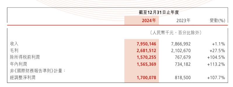 2024年,网易云音乐实现营业总收入约79.5亿元,同比增长1.1%;经调整净利润为17亿元,同比增长107.7%。