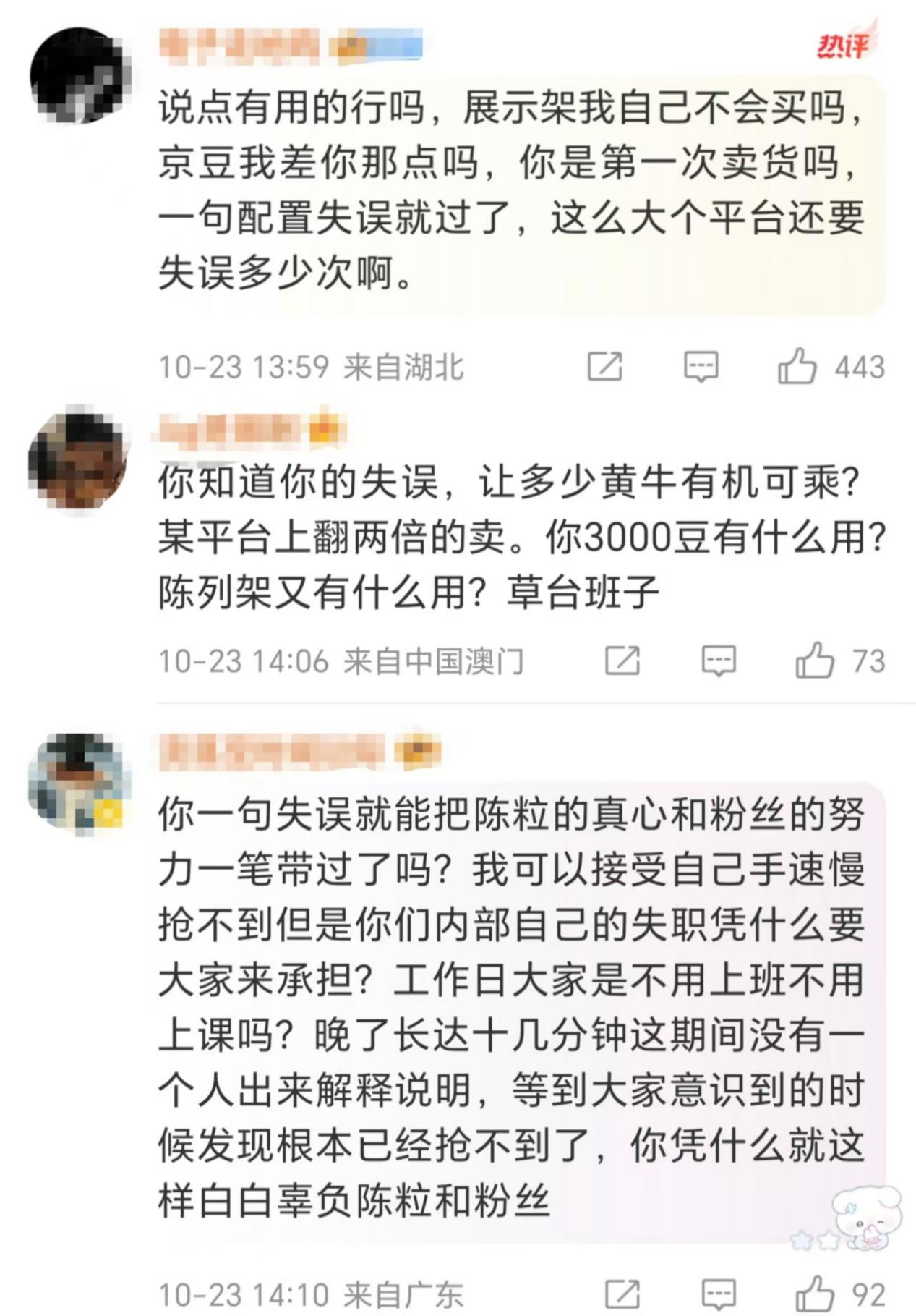 然而,这份声明未能平息消费者的不满。消费者在评论区质问:“说点有用的行吗,展示架我自己不会买吗?京豆我差你那点吗?你是第一次卖货吗?这么大个平台还要失误多少次?”