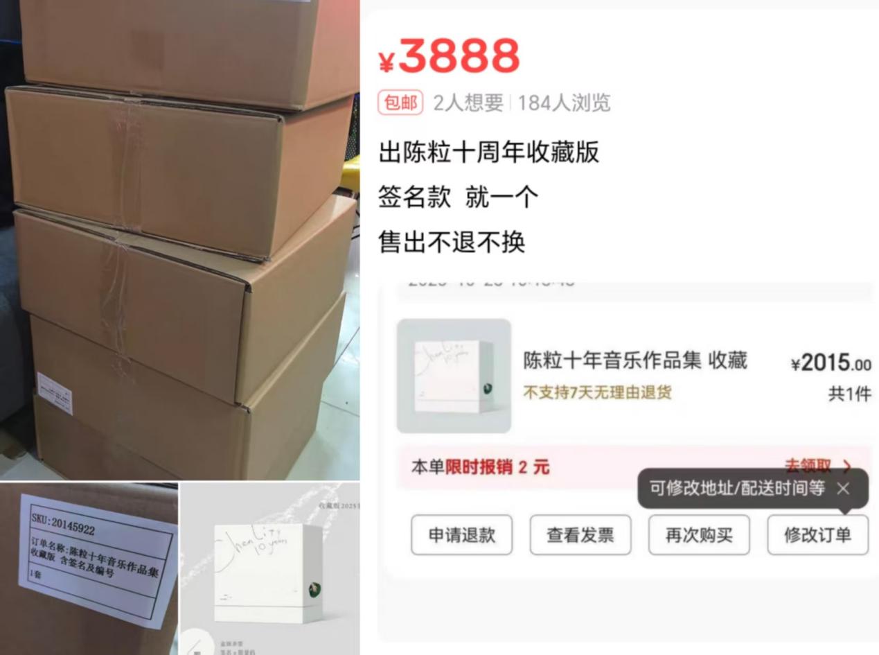 大公科技注意到,在某二手平台上,限购1件的《陈粒十年音乐作品集》收藏版被大量转售,售价更是逼近4000元。