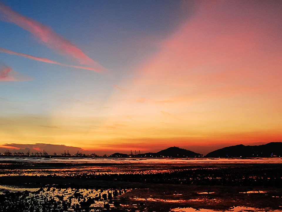 下白泥是香港有名的日落圣地,据说这是全港夕阳最美的地方。平塬连着大海,形成了无边泳滩,造就了下白泥极佳的观景视野,潮涨是海天一色的天空之境,潮落可见一片蚝田,阳光洒在滩涂上,美成一幅画。