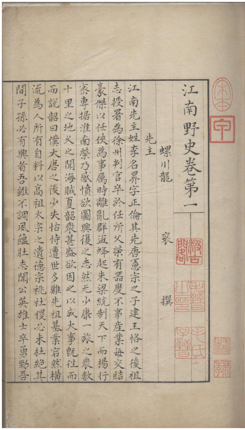 12509 江南野史十卷 (宋)龙衮撰 明末毛氏汲古阁抄本 河南省图书馆
