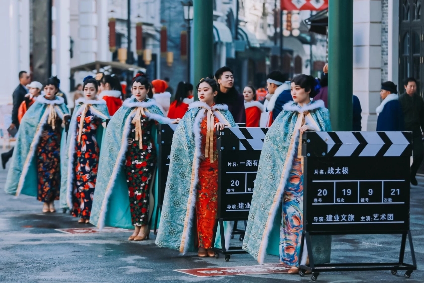 冬季“戏精”穿越大会是电影小镇一年一度的大型“暖冬”穿越主题活动。活动期间,电影小镇每天会为游客免费提供1000套各式各样的风棉斗篷,以满足游客体验穿越感需要。同时为所有游客提供全天不间断的免费姜茶,持续温暖这个寒冬。游客换上穿越冬装,身披斗篷,手持宝剑,体验一把闯荡太极江湖的侠客人生,令置身于此的游客仿佛瞬间穿越数百年。