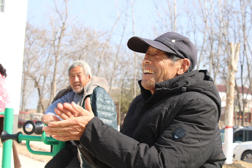 当天上午,春光明媚,阳光正好。邢北村的村民早早地就带着马扎、板凳在村文化广场大舞台前面等候观看演出。