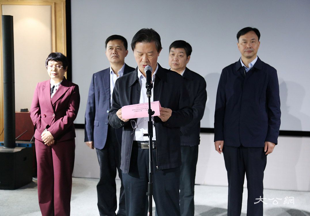 民盟开封市委会副主委郭兴方宣读《关于成立民盟中央美术院开封分院领导机构的决定》。