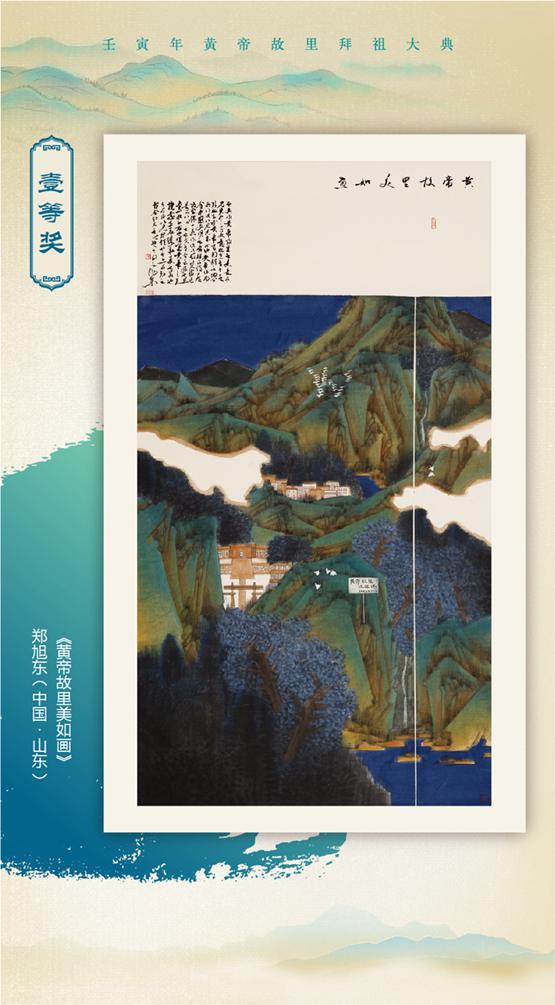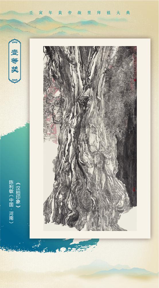河南作者陈利敏的《汉柏印象》、山东作者郑旭东的《黄帝故里美如画》获得了绘画一等奖。