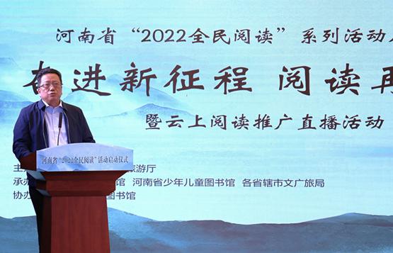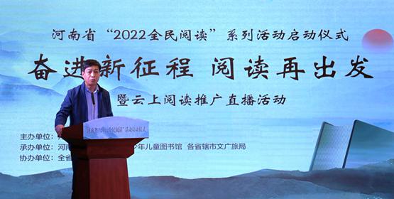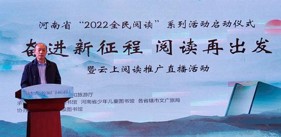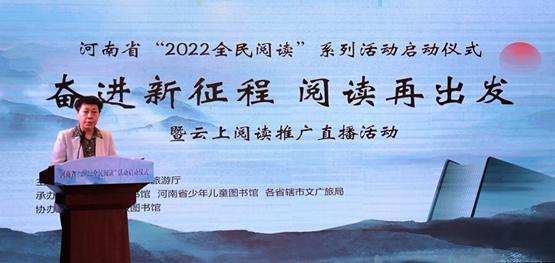 在第27个世界读书日来临之际,为营造良好的阅读氛围,迎接中国共产党第二十次全国代表大会胜利召开,4月22日上午,由河南省文化和旅游厅主办,河南省图书馆、河南省少年儿童图书馆及各省辖市文化广电旅游局承办,全省各级图书馆协办的“奋进新征程 阅读再出发”--河南省2022全民阅读系列活动启动仪式暨云上阅读推广活动在河南省图书馆举行。