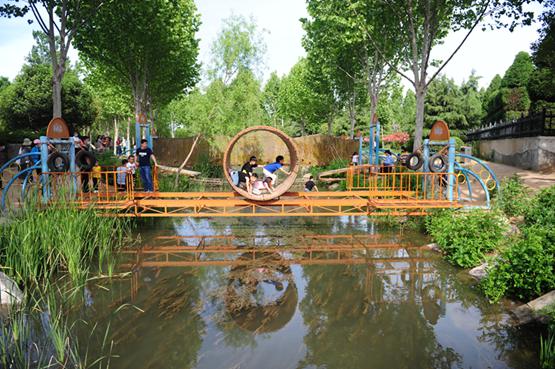 悬于河上的趣桥世界,惊险、益智、新奇。过桥的难易程度很具挑战性,有令人恐高的五环桥;也有集体力、平衡力于一体的吊装桥;有尝试体形灵活性的钻圈桥等,对不同年龄、兴趣、胆量的人都有极高的吸引力。