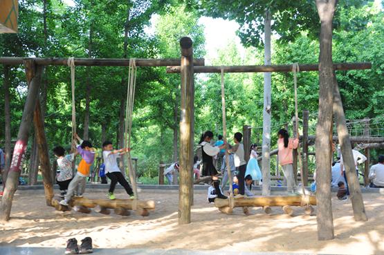 经过填沙、加固之后的勇敢者道路区域,俨然已成为孩童们的戏耍天地。独木历险、吊环飞人、翻山越岭、双木平衡、木梯摆渡、天罗地网等多个游玩项目深得小朋友喜欢。