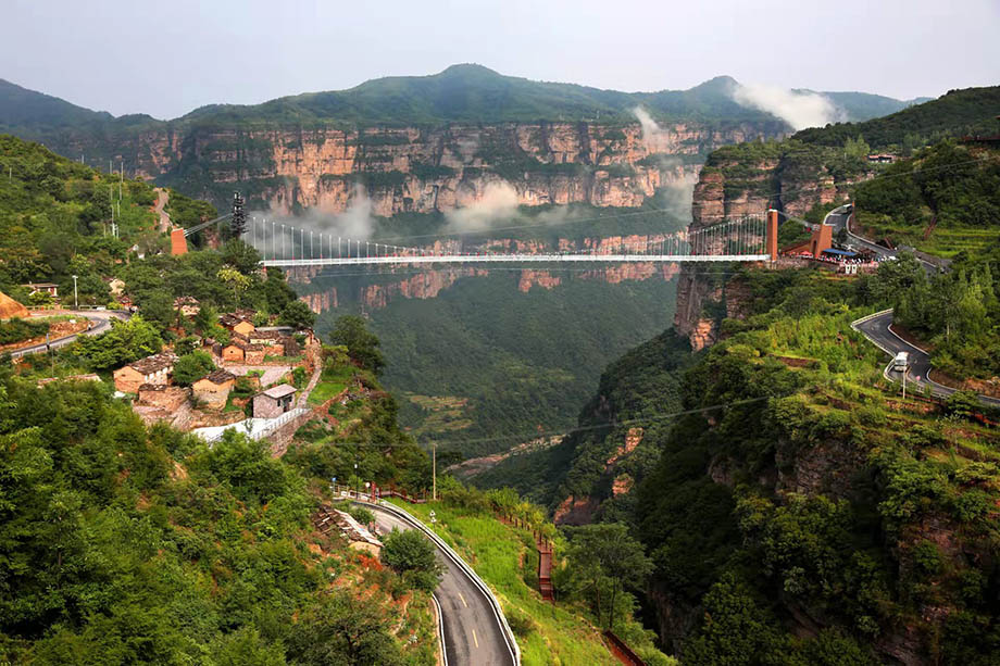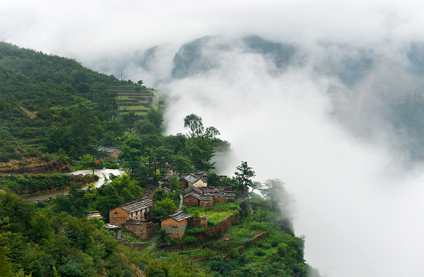盛夏时节,河南林州太行大峡谷连续多天下雨。 8月4日,雨过天晴,林州太行大峡谷景区云雾缥缈,青山、田园、河流和村庄在云雾中若隐若现,宛如人间仙境。