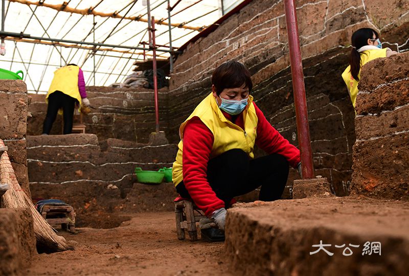 12月10日,工作人员在河南南阳黄山遗址考古发掘现场作业。