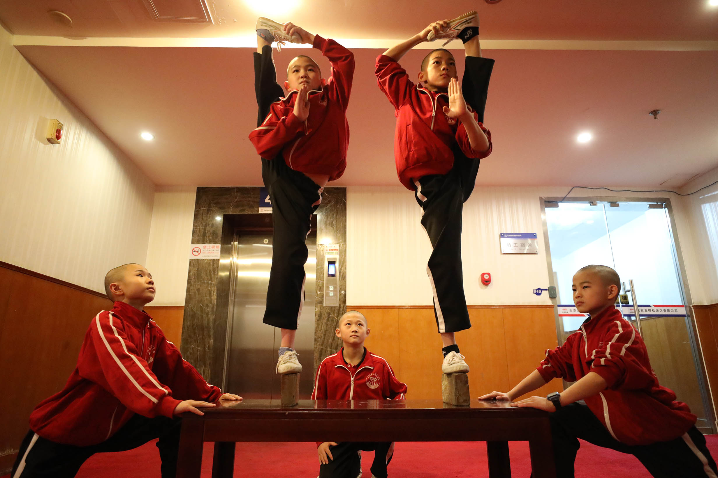 “最开始站在砖上都费劲,一会功夫就会摔倒,经过一步一步的练习,现在都能朝天蹬站五分钟,完全达到了导演的要求。”在教练眼里,10岁的范杰亮是其中练的最好、发挥最稳定的一名演员,“训练认真刻苦,上进心强,敢于挑战自己,平时还主动加练,他是最晚练的这个技巧,但因为练的最多,现在已经成为我们这个团队里练的最好的一个。”