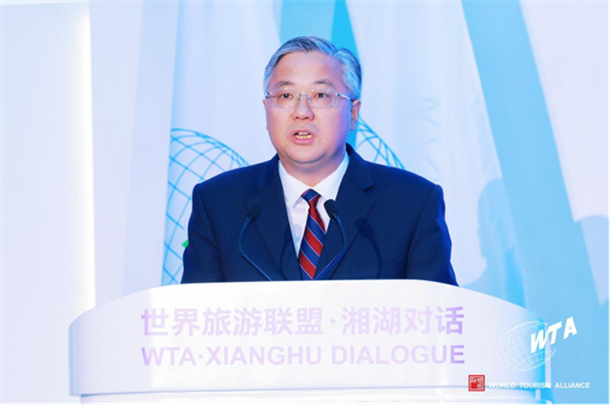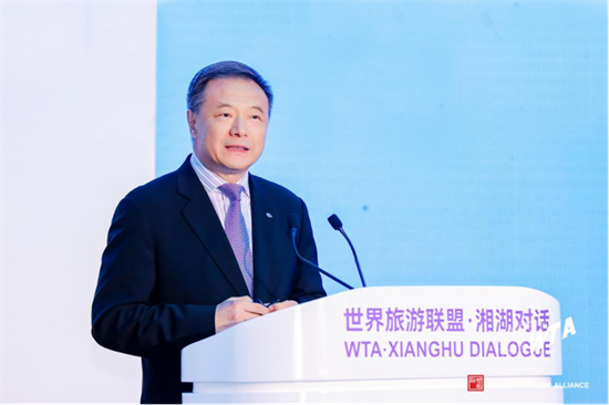 张旭在致辞中表示,旅游业已经成为新兴的战略性支柱产业和具有显著时代特征的民生产业、幸福产业。世界旅游联盟自成立以来,打造了以“湘湖对话”为核心的系列品牌活动,进一步彰显了联盟在国际旅游业界的影响力,并发布多项研究成果,为政府公共管理、企业市场决策等提供了数据和理论支持。截至目前,联盟已有来自45个国家和地区的252个会员,覆盖旅游产业链上下游多个领域。本届湘湖对话以合作、绿色、开放、包容、创新与人才培养为切入点,发掘旅游业在促进国际交流合作、赋能教育培养人才、推动产业转型升级与助力人与自然和谐共生等方面的潜力,谱写全球旅游业发展新篇章。