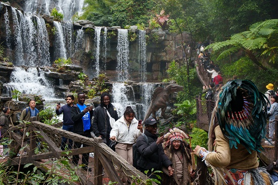 古龙峡以得天独厚的生态资源与文旅融合新貌,成为元旦短途游的热门目的地。景区创新引入的“全园情景互动”模式让来自各地的游客在欣赏自然景观的同时,与身着特色装扮的“部落野人”不期而遇,将单纯的山水游览升级为一场充满惊喜的沉浸式的丛林奇遇。这一独特体验吸引了大批追求新奇与深度互动的年轻游客及家庭群体。