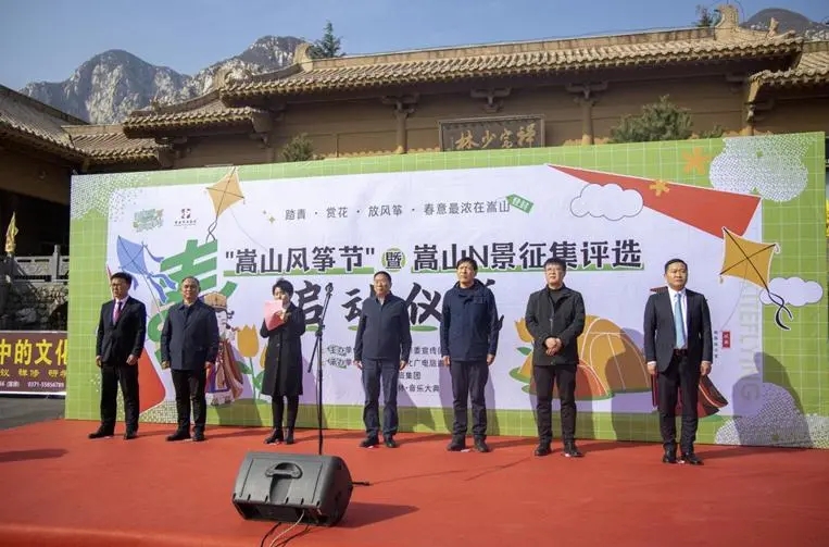 迎着徐徐春风,“天地之中”8处11项历史建筑、少林铜人以及千米的长串龙、滚地龙、西游记师徒四人、奥特曼、大章鱼、20平方大型葫芦等各种造型的巨型风筝同时在少林景区、嵩阳景区和禅宗少林•音乐大典三个场地放飞,竞技风筝表演、参观风筝长廊、观赏风筝花灯、DIY亲子风筝等活动相继铺开,嵩山主要景区漫天风筝飞舞。