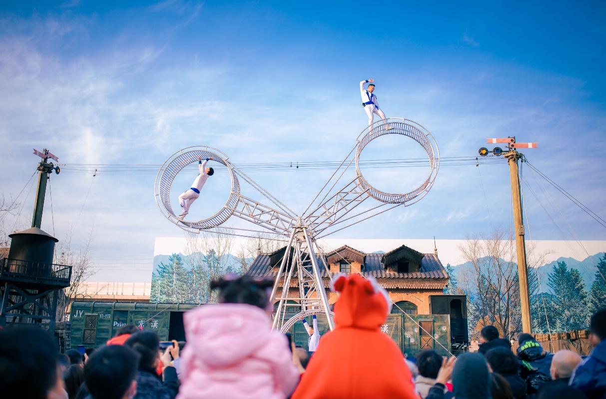 白天,对台戏、杂技大飞轮、舞狮闹新春等氛围感十足的新春节目将火热上演,为游客带来年味浓郁的精彩表演,此外,还有激情澎湃的国潮新春音乐派对、互动感十足的戏曲巡游、传统武术与现代舞美交融的新剧《太极》等超百场的精彩演出,带领游客共赴一场火热欢腾的新春文化之旅。