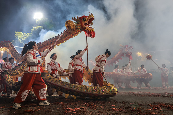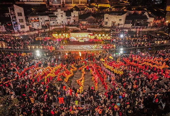 2月12日,正月十五元宵节,“元宵喜送龙”活动在湖南省怀化市洪江古商城盛大举行,数十条龙狮再次齐聚,通过“烧龙”“过火”等程序,用传统的方式送龙飞升,吸引了众多市民和游客前往观看,充满民俗风情的文化盛宴精彩上演。