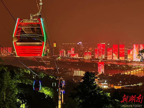 现在,游客不仅可以站在山顶看灯火辉煌的街头,还可以乘坐缆车移动欣赏最精华的浪漫夜长沙。从山顶坐缆车而下,迎面而来的就是长沙一江两岸灯光秀最精彩的一段——从文化聚集地北辰三角洲到充满青春活动力、氤氲人间烟火的“五一”商圈;从最高建筑国金中心,到文化地标杜甫江阁;从国际大师“手作”梅溪湖国际文化艺术中心,到“湘江航母”橘子洲;从北辰洲际的先锋剧场,到橘子洲的湖湘文化演艺江天暮雪……东西往复的岳麓山索道,与南北穿梭的湘江游轮,构成了长沙文化味、活力强、烟火气的十字坐标。