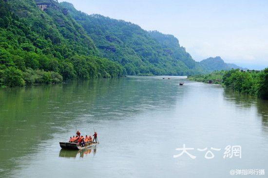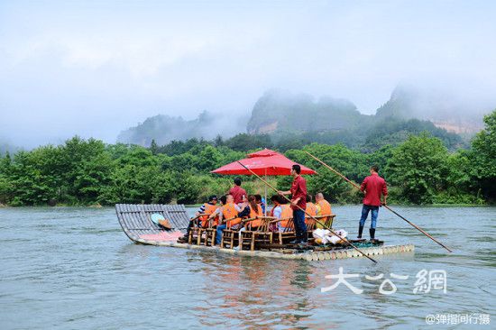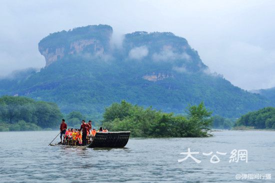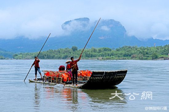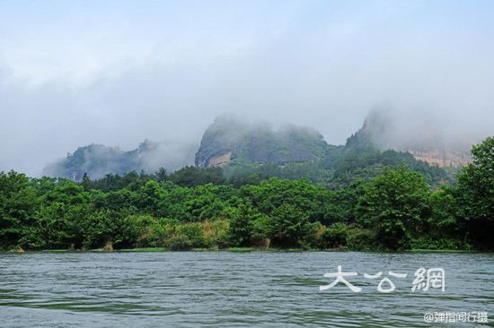 在多雨的五月的第二个周末去一趟福建武夷山,两天充沛的雨水虽影响了行程,但似乎没太多影响到心情。清晨雨停的间隙,我们一行相约去坐竹筏漂流。由于几日的大雨导致河道涨水,武夷山经典的九曲溪竹筏漂流被迫关闭。我们只能选择在靠近武夷山景区腹地的云河漂流,虽这里的景观与九曲溪无法比拟,但荡舟在烟云笼罩中的云河,一路欣赏右岸“犹如琵琶半遮面”的梦幻胜景,也足以彰显武夷山水的美丽与迷人。
