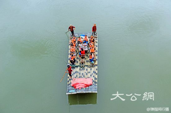 一张大竹筏可乘坐10人,有3名艄公,1名茶艺师兼导游。