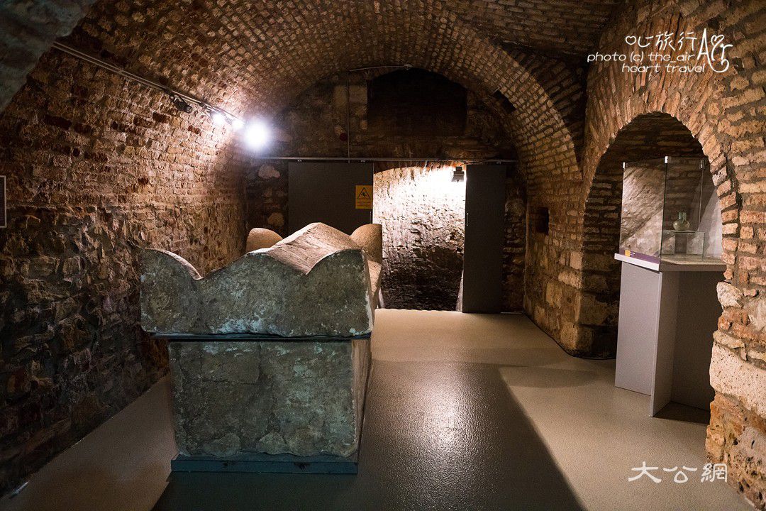 在大教堂前面的地下室里有古基督教的墓群,因为据说索菲娅曾埋在这里。富裕市民的墓室是两层的,墓室内不仅能看到石棺,还有壁画,其中一幅描绘了爱娃与亚当的偷吃禁果;另外一幅画的是坐在狮子中间的正直法官丹尼尔肖像,墙上还有高高在上的耶稣。这些能看到的墓室大约建于四世纪中叶。