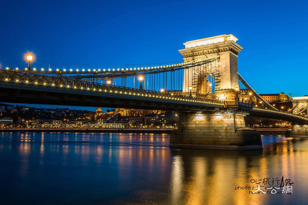 链子桥(Széchenyi Lánchíd )于1839年开始兴建,1849年完成,是连接布达与佩斯间九座大桥中最古老最壮美的桥梁。二次大战期间德军为了巩固他们在城堡山上的堡垒,因此将桥梁全部炸毁,历经战后的重建,链子桥在完工后的一百年即1949年重新通行。链子桥是第一座真正连接佩斯与布达两城的永久性建筑。正如塔桥是伦敦标志一样链子桥多年来一直是布达佩斯的象征。