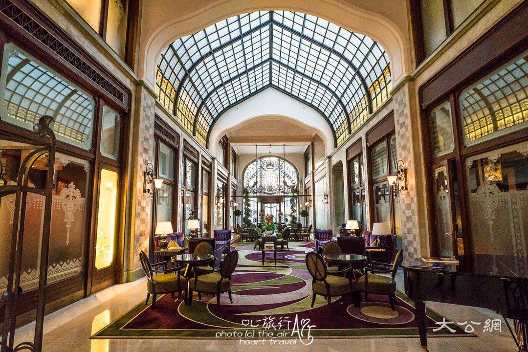 格雷沙姆宫建于1906年,从它诞生之日起就成为中欧新艺术主义的杰出代表作。2004年,四季酒店对这座建筑进行了重新修整和装饰,打造成为布达佩斯格雷沙姆宫四季酒店(Four Seasons Hotel Gresham Palace Budapest),让这座已有一百年历史的老建筑重新焕发了光彩。走进门口被复原的精美的孔雀图案铁艺大门,是玻璃穹顶下的大厅。现在的玻璃穹顶是艺术家们按照遗留下来的残片精心复制还原的,穹顶下是巨大而精美的羽毛状水晶灯。地面上的镶嵌马赛克来自于意大利威尼斯,是这座宫殿原始遗留下来的。建筑内部以白色和米色色调为主,处处散发着典雅的气质。