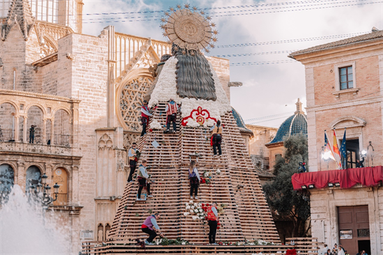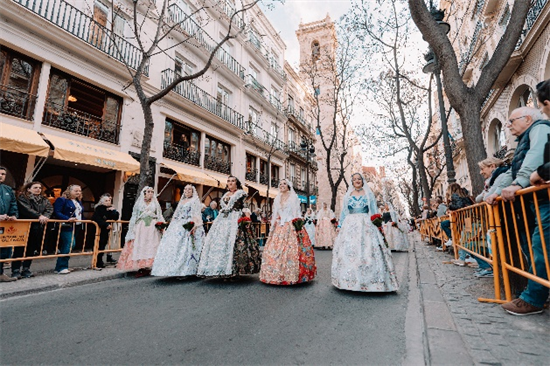 3月17日和18日举行了盛大的法雅节游行,数千名瓦伦西亚人身着传统手工制作的服装,随音乐在街道上载歌载舞。盛装打扮的法雅小姐和法雅先生手捧鲜花,按照既定的游行路线前往圣母广场,向五层楼高的木制圣母像献上鲜花。志愿者会爬上木架,根据预先设计的图案把鲜花安插到圣像上。
