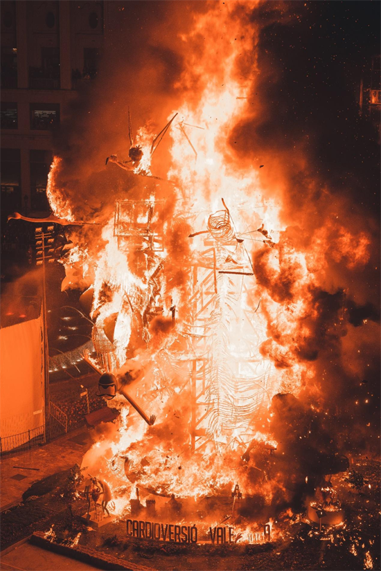 如美国作家杰克·伦敦在他的小说中所言,“但那个人并不害怕,他转向了火堆”,又如英国诗人艾略特在诗《荒原》中呼唤“燃烧,燃烧,燃烧,燃烧/主啊,救救我/主啊,救救我/燃烧”,在全球不同的文化中,“火”均代表着重生、更新和生命的意志,瓦伦西亚人也把火和燃烧视为新生、希望和乐观。