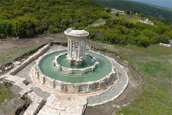 文物挖掘委员会主席、副教授Şükrü Özüdoğru带领一支由考古学家、修复师和建筑师组成的专家团队,参与了这项庞大的修复工程。在这座喷泉的挖掘和修复过程中,专家们发现它由两个池塘和192个建筑块组成,其中168个是原始文物。专家在修复过程中发现喷泉由三个主要部分组成:喷泉中央矗立着一个圆塔,周围环绕着六根柱子,水源处放置了六尊狮子和豹子的雕像,然而挖掘过程中只找到了其中两尊。如今,这两尊原始雕像在布尔杜尔博物馆展出。