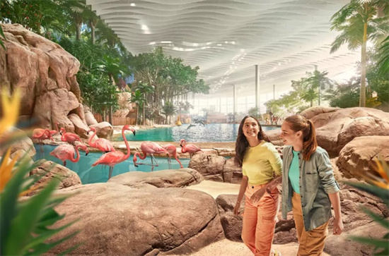 “热带海洋(Tropical Ocean)”区展示了生机盎然的热带雨林和蓝色泻湖的美丽景色,这里汇集了各种海豚、鱼类、火烈鸟和其他鸟类。