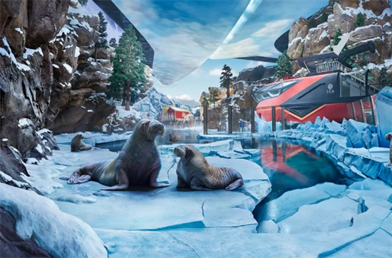 “极地海洋(Polar Ocean)”分为“北冰洋(Arctic)”和“南冰洋(Antarctica)”区域,游客在这里可以观赏到极地海景,并了解极地物种的独特习性。