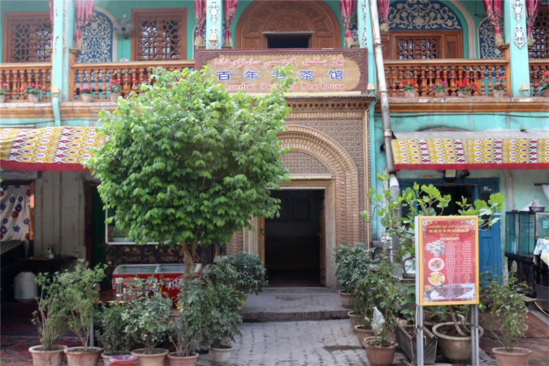 百年茶馆,是古城景区繁华街道上的地标,因历史悠久而成了网红打卡点。茶馆里依稀是旧日模样,茶客们盘腿围坐在土炕上,随意地聊天、喝茶;有人在拨弄“弹拨尔”,在略显沧桑的琴声中,悠悠哼唱起来。也可以寻一处僻静阳台坐下,任阳光暖暖洒落,静静看街上人来人往。百年时光,沧海一粟,却已珍藏了几代人最美好的回忆。