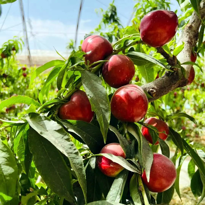 一个个油桃子晶莹剔透、果肥汁甜、鲜美诱人……