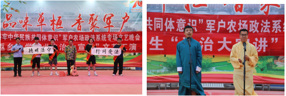为充分发挥兵团籍返乡大学生在推进基层治理体系和治理能力现代化方面生力军作用,积极组织返乡大学生开展“法治大宣讲”专场法治文艺演出。返乡大学生们一起精心策划,精心编排,自编自导的相声《笑谈民法典》,诗朗诵《政法之光》、歌曲《幸福花儿》等节目精彩上演,为群众送上了一道“法”味十足的“文化大餐”。将文艺和法治有机结合,以群众身边的工作轶事、生活趣事为切入点,涵盖宪法、民法典等多部法律,让广大职工群众欣赏精彩表演的同时,学到更多法律知识,获得观众一致好评。
