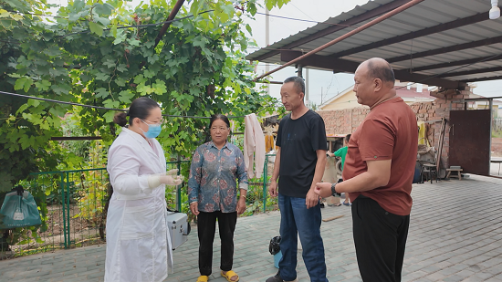 六师共青团农场医院医生二连卫生员陈婧说:“因为连队卫生室离患病家里比较远,每次义诊或者入户随访的时候,都和连队的‘两委’一起来,,入户为老百姓看病,健康宣教和日常的健康指导,测血压测血糖 。”