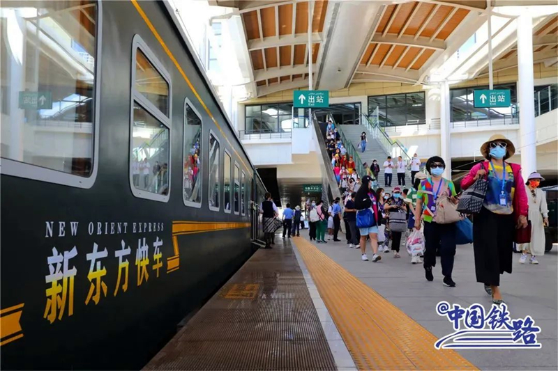 今年,新东方快车首次“驶入”第七届中国—亚欧博览会。在新疆国际会展中心中国铁路乌鲁木齐局集团有限公司展区,1:1比例还原了新东方快车金钻车厢,还按照1:20的比例制作金钻车厢、蓝钻车厢、酒吧车厢整体模型,直观还原展示了车内结构和设施。