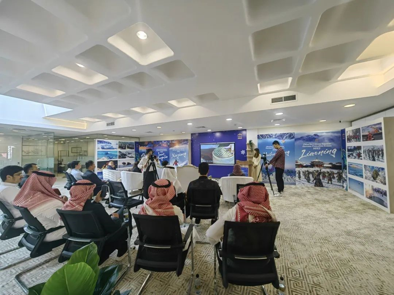 12月8日,2023“中国北方冰雪旅游海外推广季”——沙特利雅得海外宣传活动在沙特智慧宫中文学院开幕。