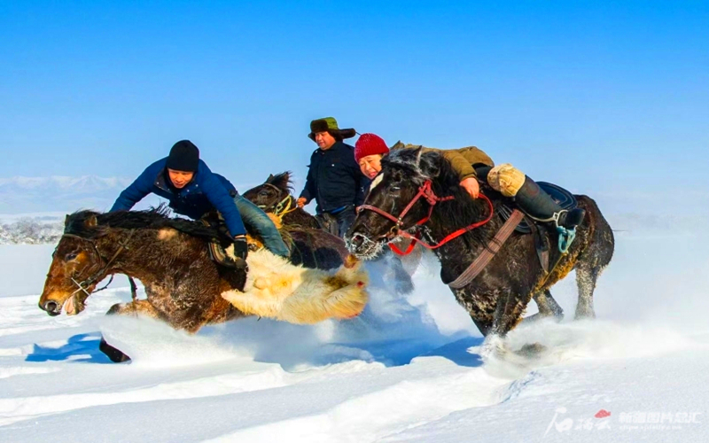 伊犁哈萨克自治州将冰雪休闲旅游与刁羊、赛马等民俗活动相集合,打造民俗冰雪休闲游。秦杰摄