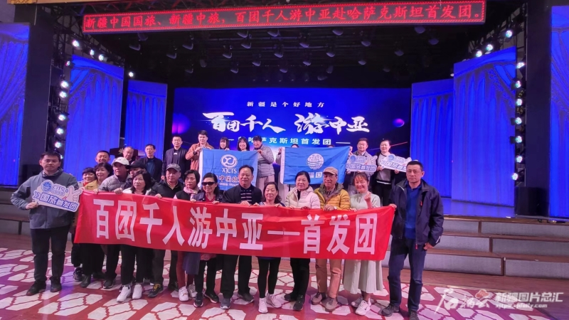 4月19日下午,由新疆中国国旅、新疆中旅组织的“百团千人”游中亚赴哈萨克斯坦首发团发团仪式在乌鲁木齐举行。石榴云/新疆日报记者阿比拜摄