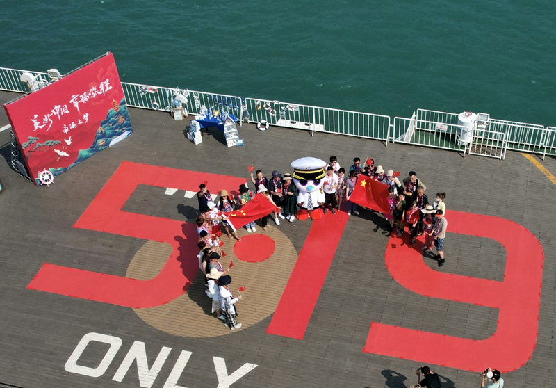 南海邮轮推出乘风破浪的“5·19”主题航次已于4月28日正式启航,5月共计10个航次在西沙航线上运行,通过多个场景凸显“5·19中国旅游日”主题,如船上甲板、船舱内营造“5·19中国旅游日”主题氛围;与游客欢乐互动,在三沙的沙滩上摆出“5·19”造型等。