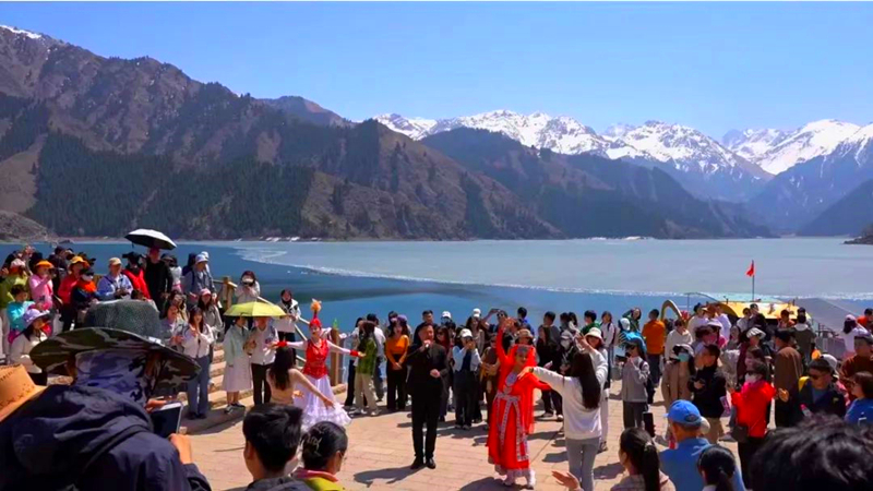 “五一”假期,全疆各地纷纷推出美景、研学、美食等文旅融合活动,以及可以深度体验旅游目的地特色文化的活动,让游客真正拥抱“诗和远方”。全疆组织线上线下文艺演出活动779场次,其中线上活动77场次,受众404186人次,线下活动702场次,惠及群众687907人次;全疆14个地州共计开展线上线下非遗活动165场次、498200人次。